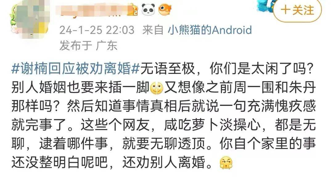 但其实在谢楠发声后,也有许多网友表示了赞同,因为综艺节目其实都图一乐,夫妻感情好不好,全靠剪辑和剧本,可以往好的剪辑,也能往坏的方面剪辑。