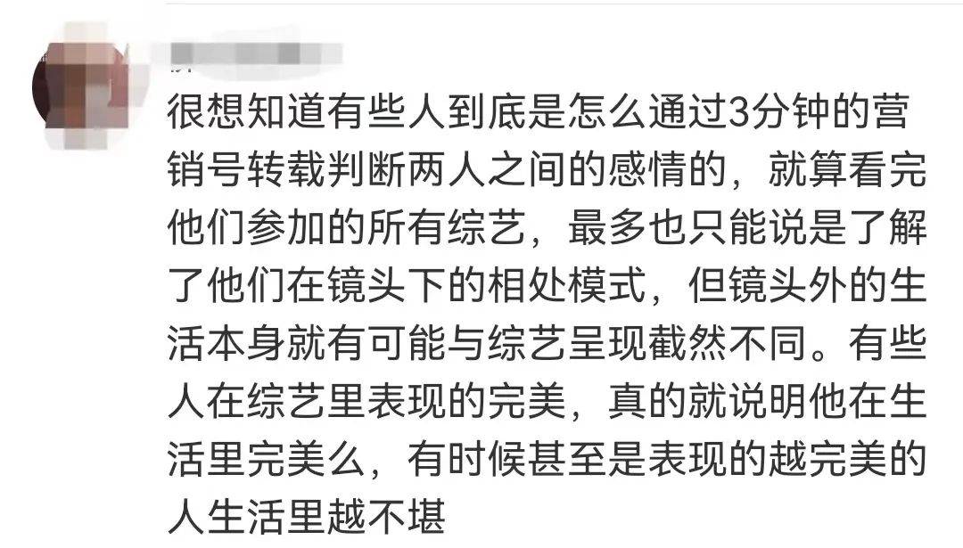 许多网友也表示,经过了朱丹和周一围,就知道不能看综艺节目的表面,婚姻冷暖自知,别显得比当事人还懂他们的婚姻。