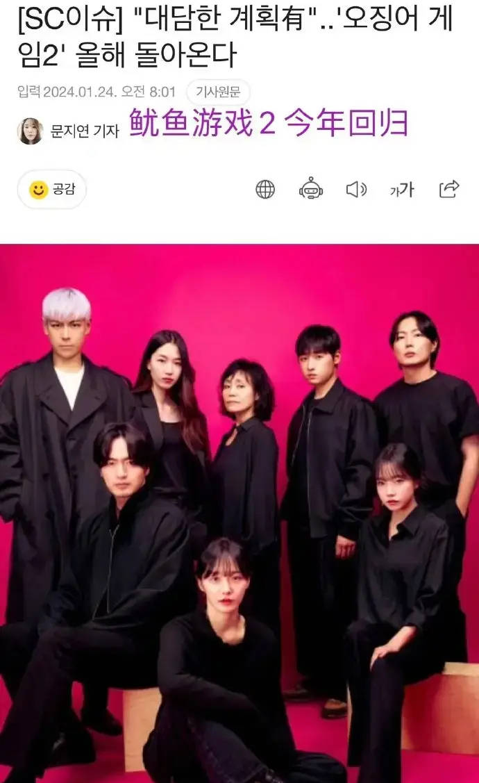 搜狐娱乐讯 1月24日,《鱿鱼游戏》宣布第二季将于今年播出。