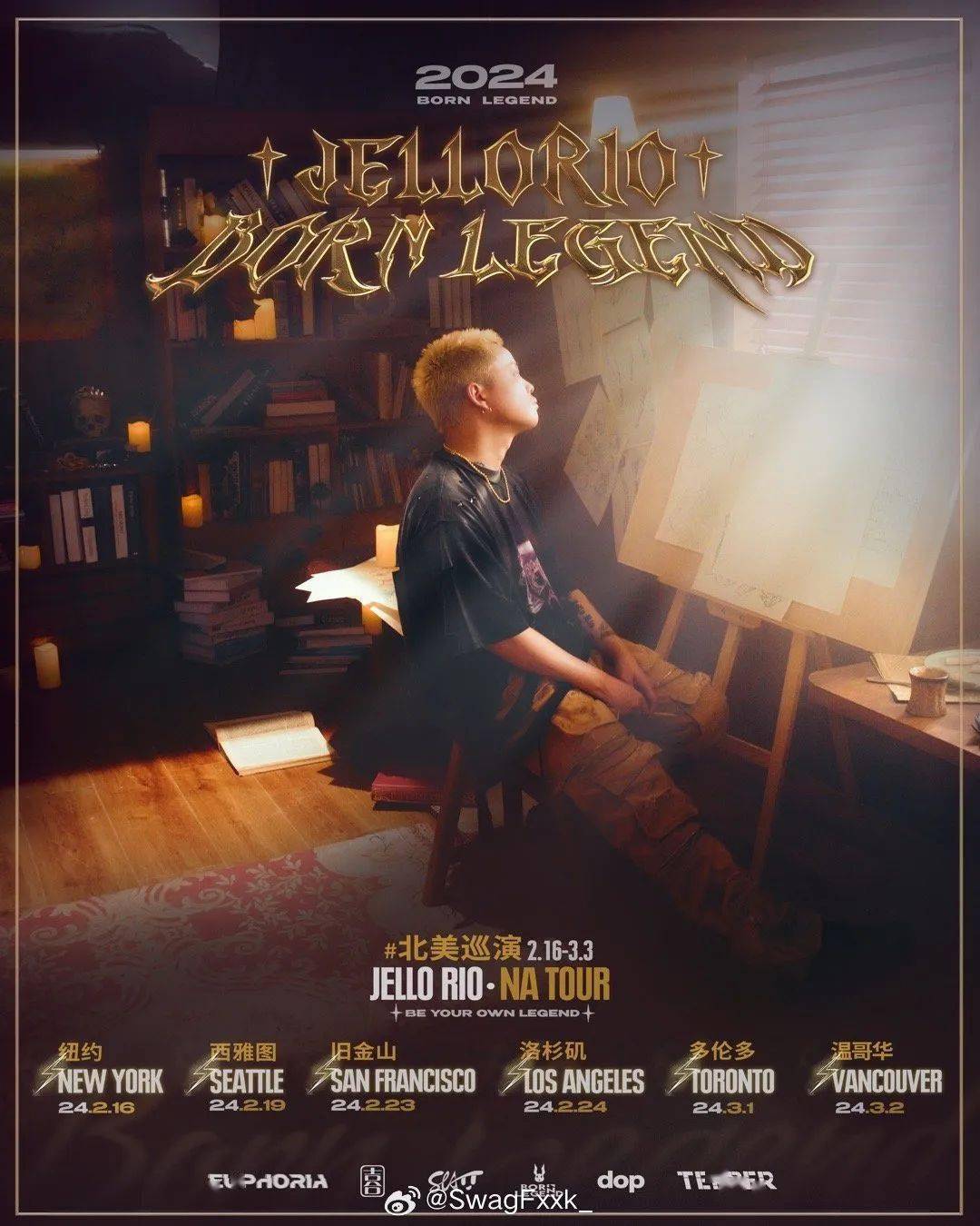 新说唱冠军李佳隆即将开启北美站巡演!2月16号开始,他将去往纽约、西雅图、旧金山、洛杉矶等六个城市巡演!