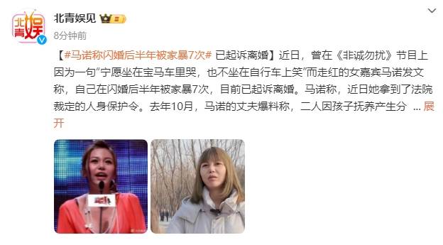 原标题:《非诚勿扰》“宝马女”马诺称闪婚后半年被家暴7次 已起诉离婚