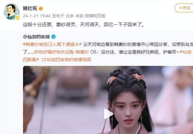 原标题:仙剑之父猛夸仙剑四,大赞鞠婧祎演技很灵,电视剧口碑大反转?