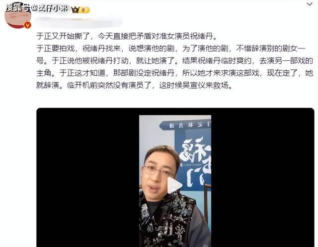 原标题:于正新剧开机现场再次内涵祝绪丹,主演表情成焦点,当事人首现身