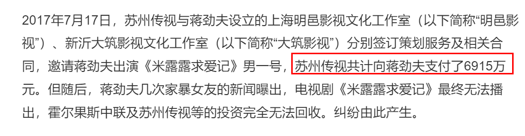 第一个热搜是关于影视公司起诉蒋劲夫被驳回的消息,根据资料显示,6年前蒋劲夫拍的一部电视剧《米露露求爱记》因为其家暴女友的传闻导致一直无法演出。