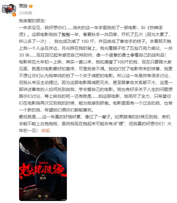 明星主创们率先上阵。贾玲发布微博,表示为了拍春节档电影《热辣滚烫》成功瘦了一百斤,消失近一年,推掉所有公开露面活动,她本人的瘦身事件成为了最好的营销抓手,刷屏社交媒体,被健身、医疗多个领域博主分析,如无意外,该片可能已经提前锁定头号种子。自带票房号召力、春节档标配的沈腾,则发博称“张弛又回来了”。