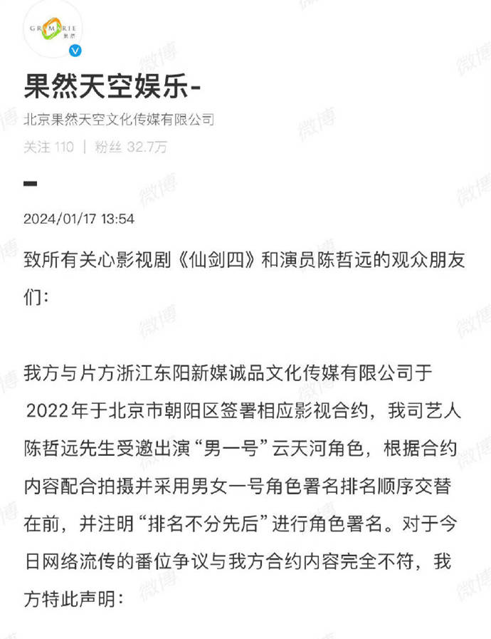 我们假设《仙剑四》剧作方确实存在这一问题,那么,不妨公开声明,并且向网友们致歉,希望通过这种方式,获得广大剧迷们的谅解。接下来,剧作方应该在法律法规的相关范畴当中,去和鞠婧祎方、陈哲远方重新商定演员排序问题,该谁在前面,就是谁在前面,该赔偿哪位演员,就赔偿哪位演员。