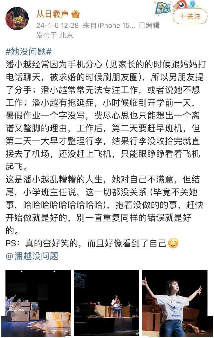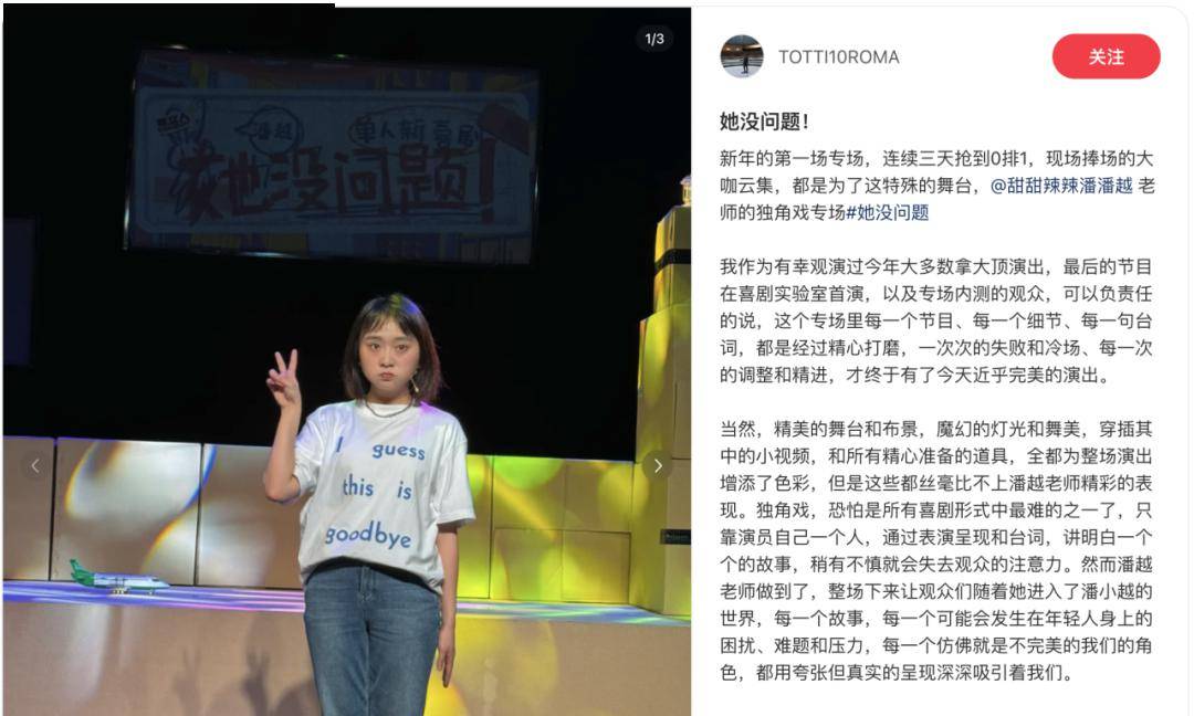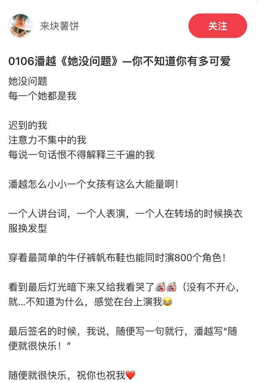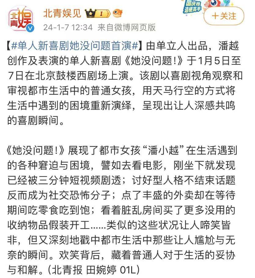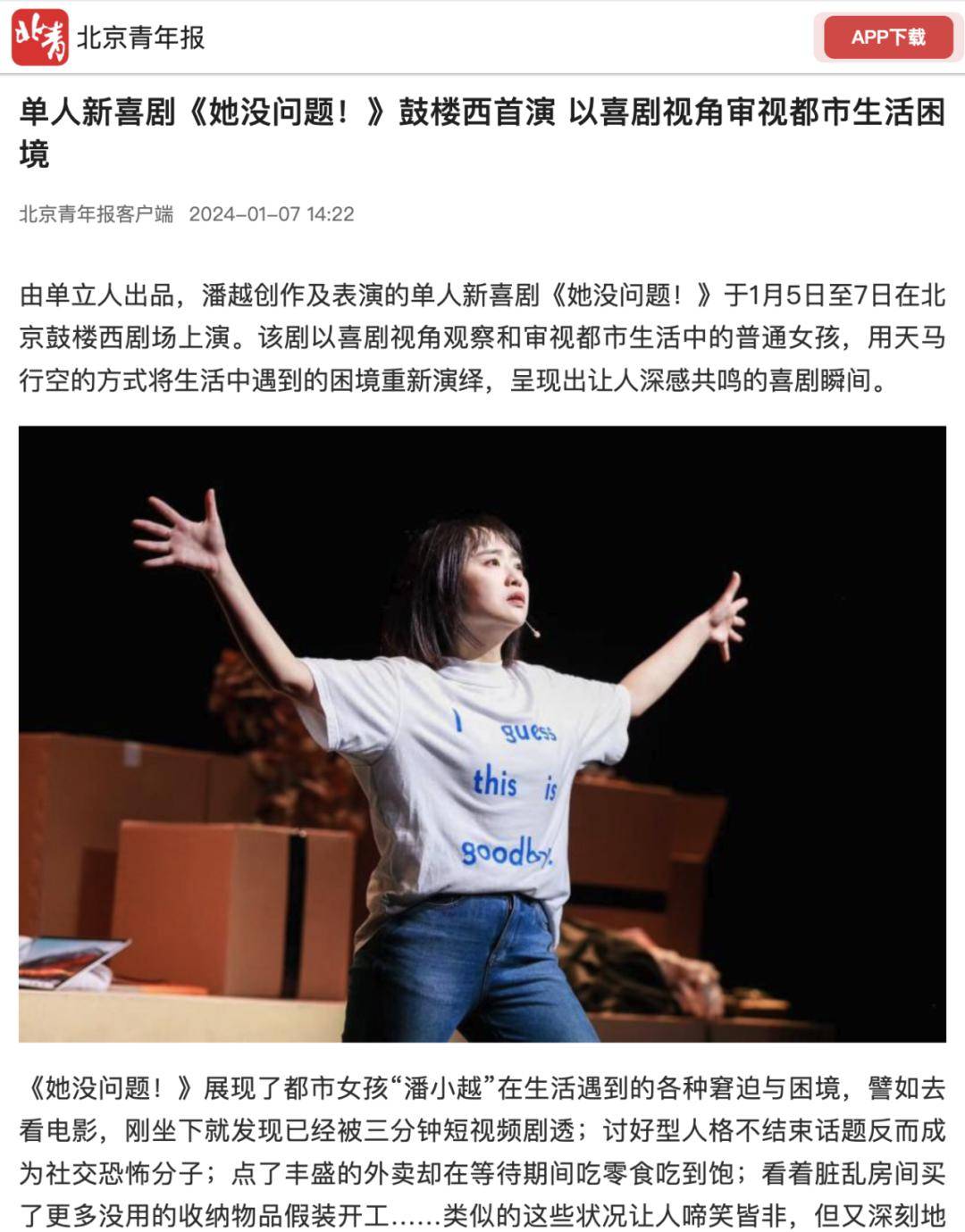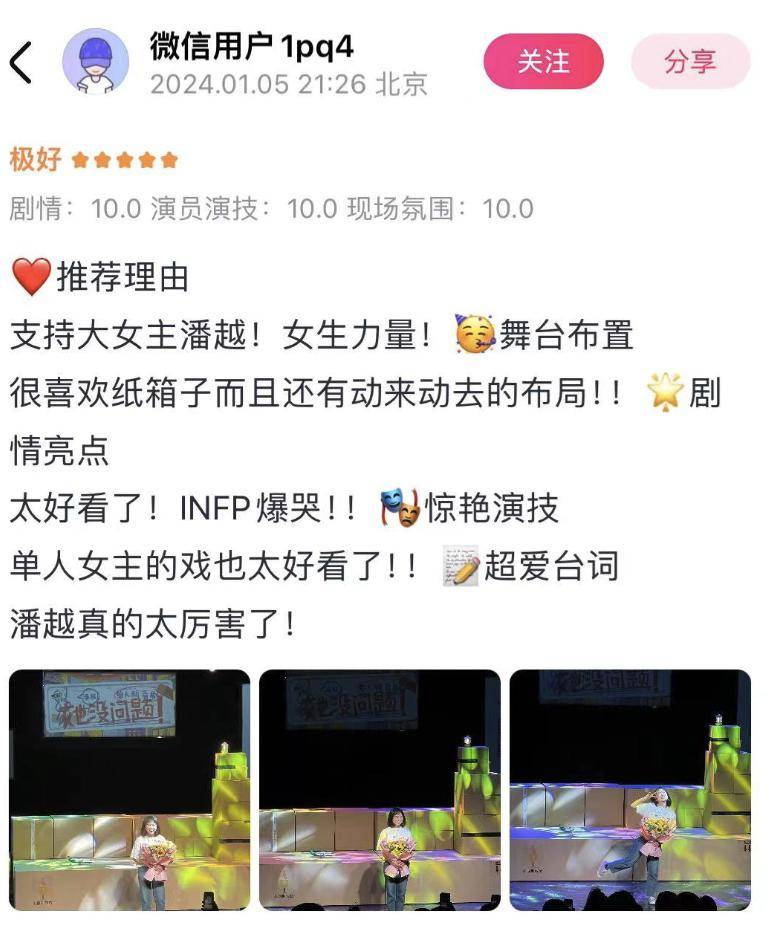 1月5日、6 日、7日,潘越在鼓楼西剧场,完成了《她没问题!》的首演,潘小越在此,感谢每一位到场的朋友啦!