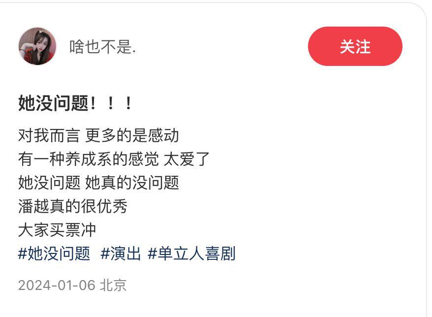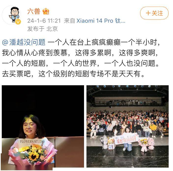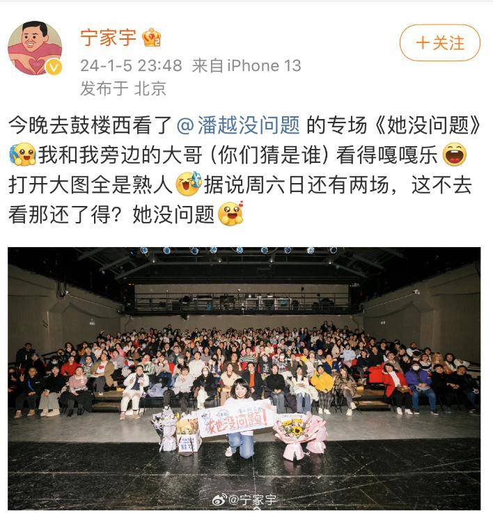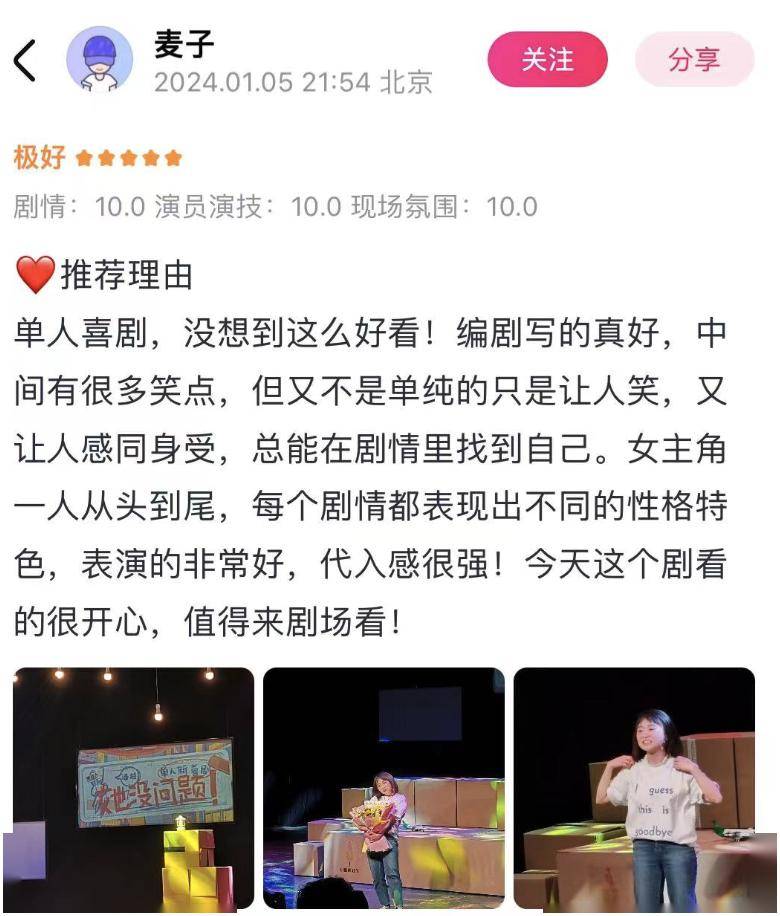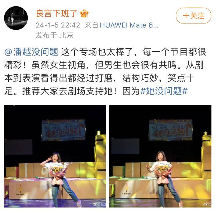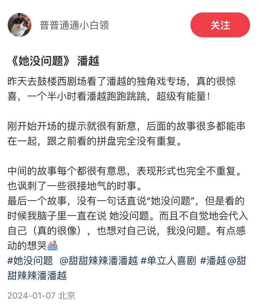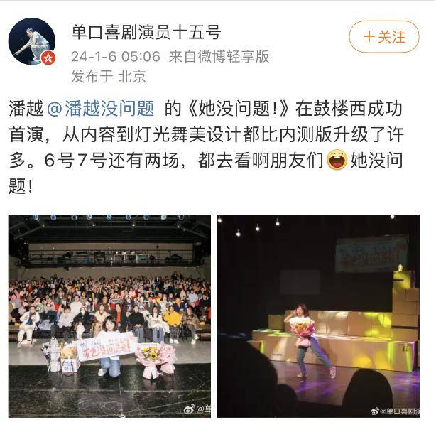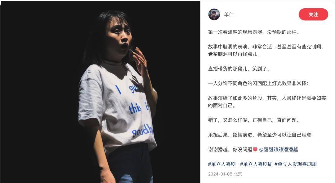1月5日、6 日、7日,潘越在鼓楼西剧场,完成了《她没问题!》的首演,潘小越在此,感谢每一位到场的朋友啦!
