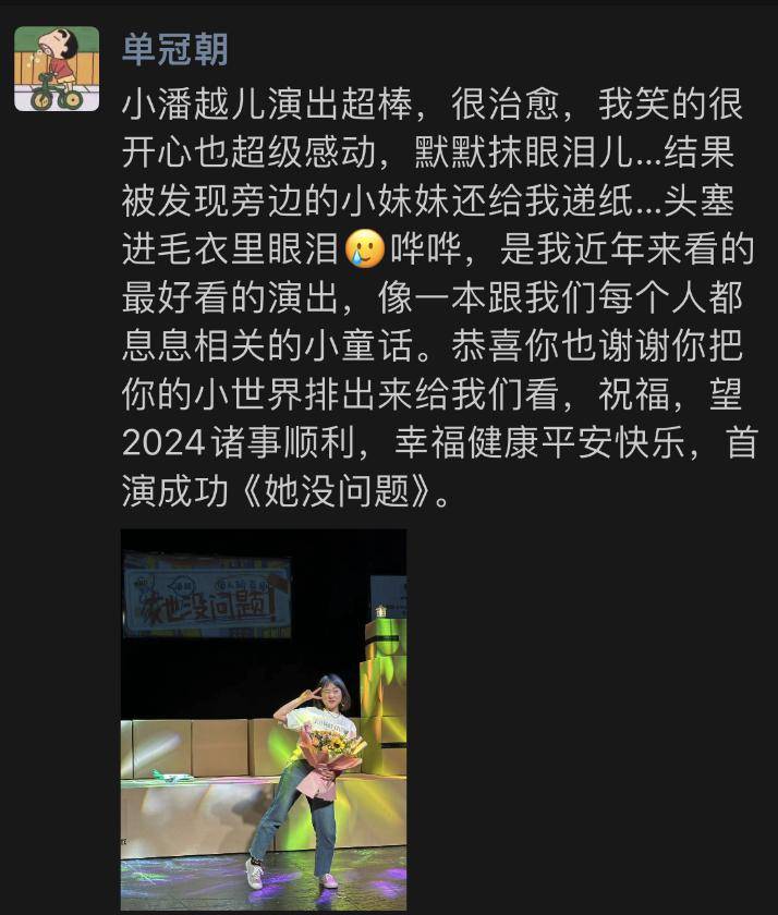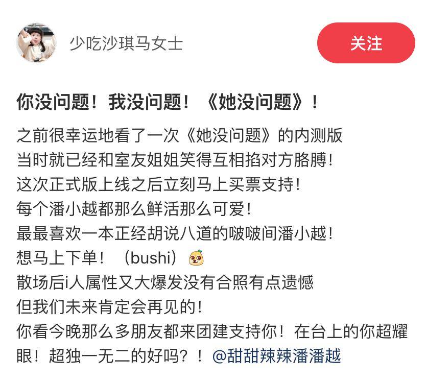 潘小越很高兴,她与她的一部作品,能给大家带来允许自己崩溃的勇气和能量❤️