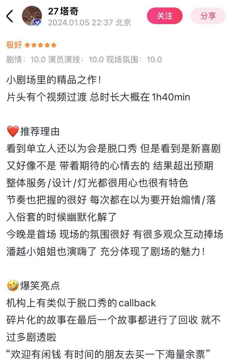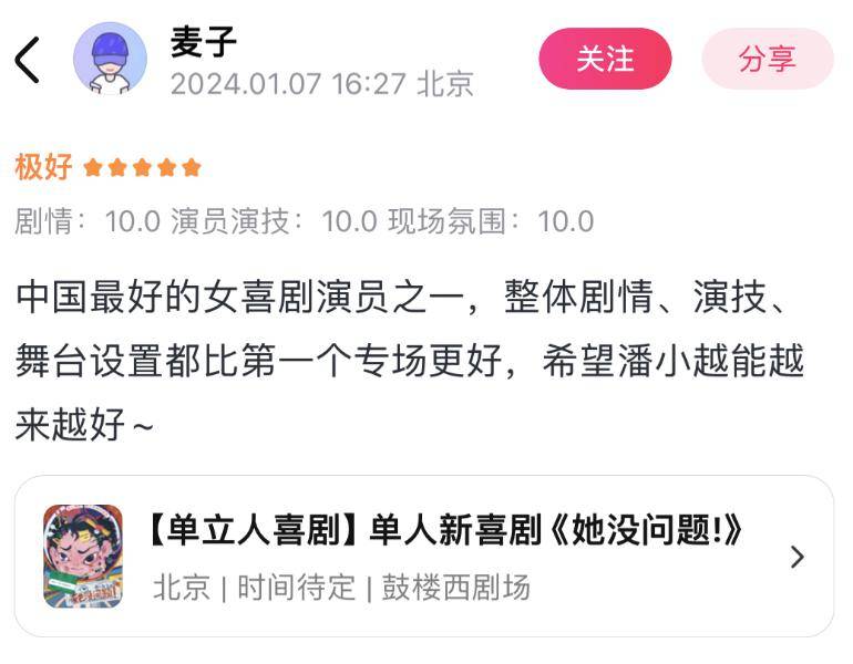这一专场,是潘越的全新尝试,演出后,也收到了众多媒体报道和演员推荐。