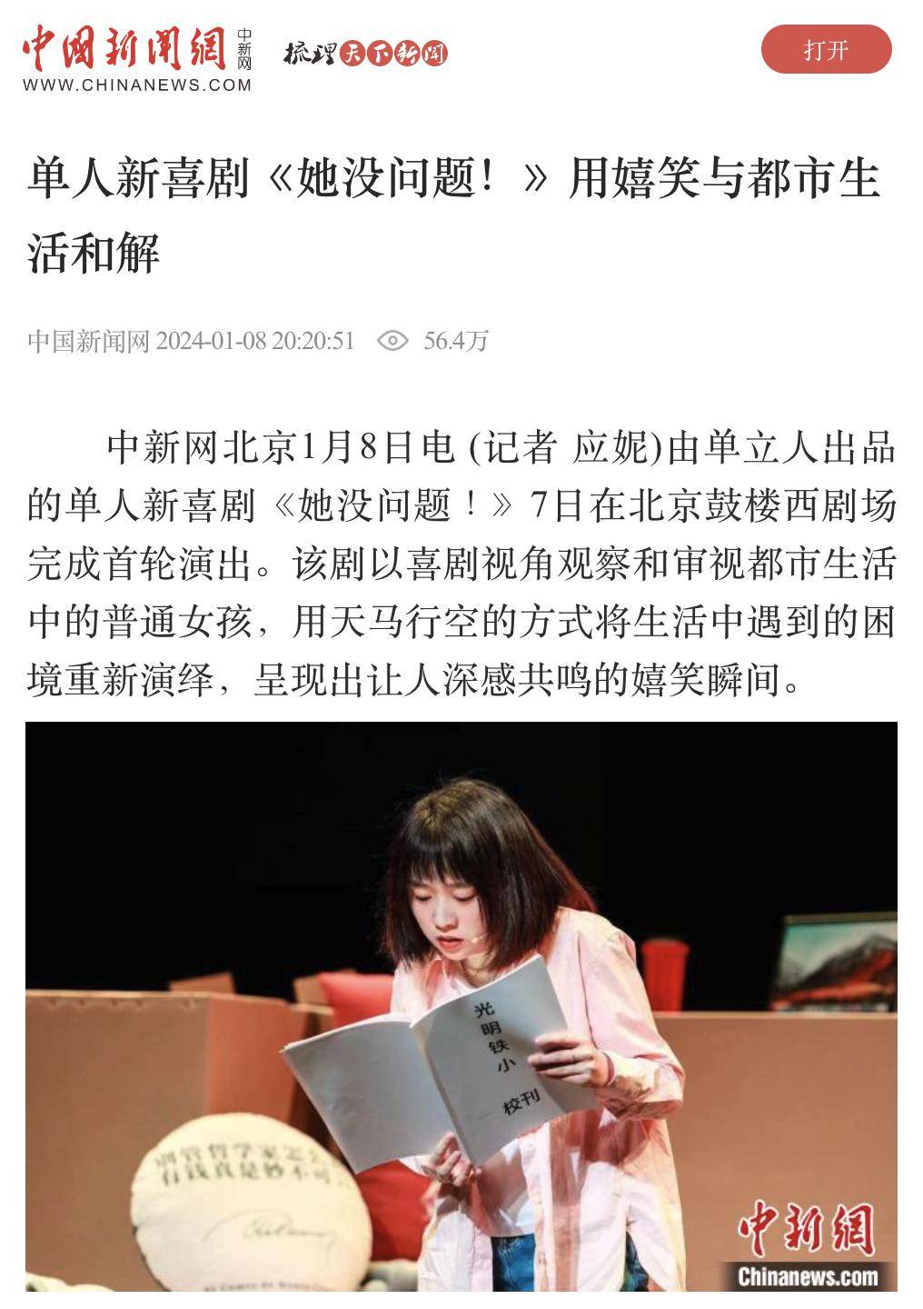 《她没问题!》是潘越推出的单人新喜剧,即由单人出演、创作手法各异的喜剧小品。