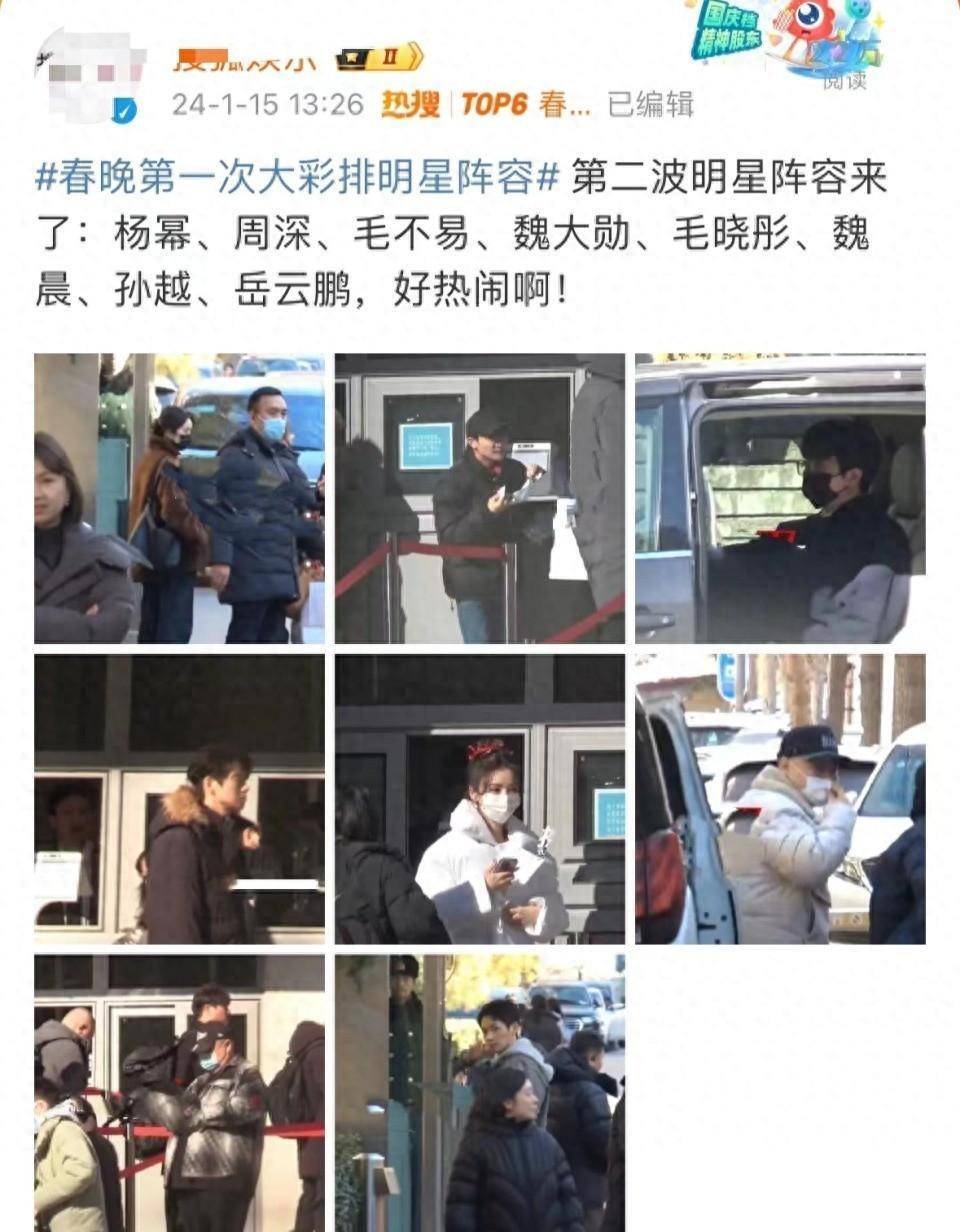 无独有偶,15日央视春晚也开始了正式大联排,有不少我们熟悉的面孔现身,岳云鹏、孙越、杨幂、魏大勋、陈伟霆、宋佳纷纷现身,央视春晚本来就是明星演员们最想参加的文艺盛会,大家都挤破头想在这个关键时刻露脸。
