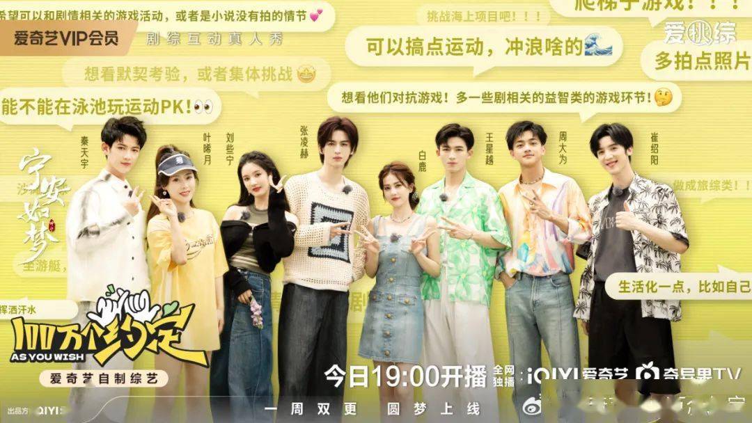第二,一鱼多吃,剧综联动二创,让大家体验追剧与追综的双重快乐。此类节目主要基于2023大热剧集进而衍生的IP综艺,诸如爱奇艺剧综联动系列节目《100万个约定》,联动平台热播大剧《七时吉祥》《宁安如梦》等主创团队,而这种热度还在,且定制化的售后团综,也获得了不少剧粉的支持与认可。