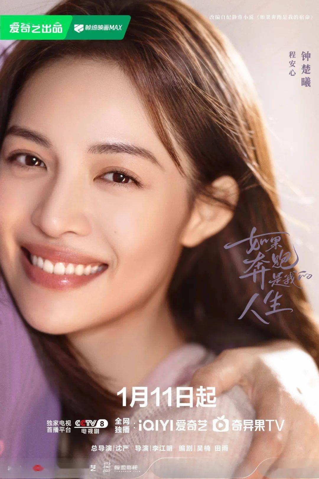 日前,由沈严、李江明执导,钟楚曦、杨超越、许娣、陈小艺、侯雯元领衔主演的《如果奔跑是我的人生》官宣定档2024年1月11日在央视八套黄金强档剧场首播,爱奇艺同步播出。该剧讲述了一场车祸过后,两个普通家庭在人生逆境中以不同姿态面对生活的故事。