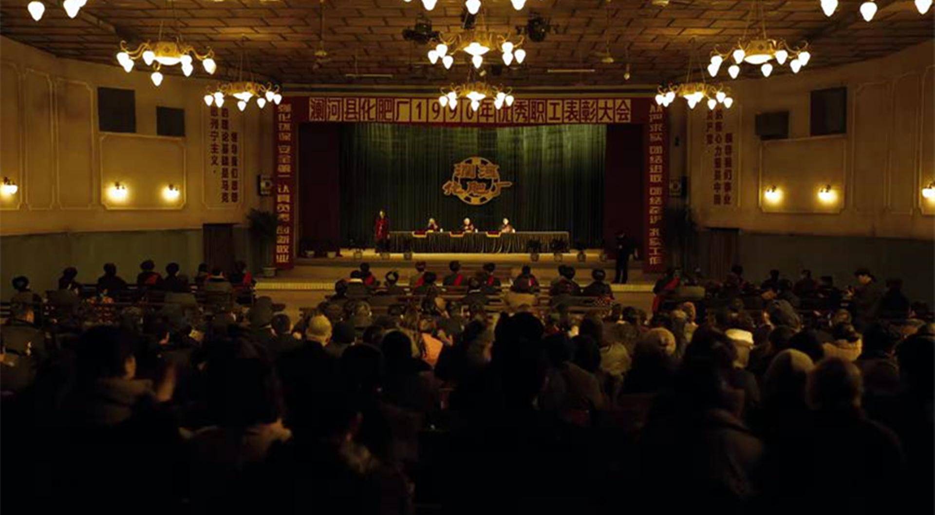 预告片一个场景惊到我——严红桥请客吃东北烧烤,却把位置定在了曾经的工厂礼堂主席台,