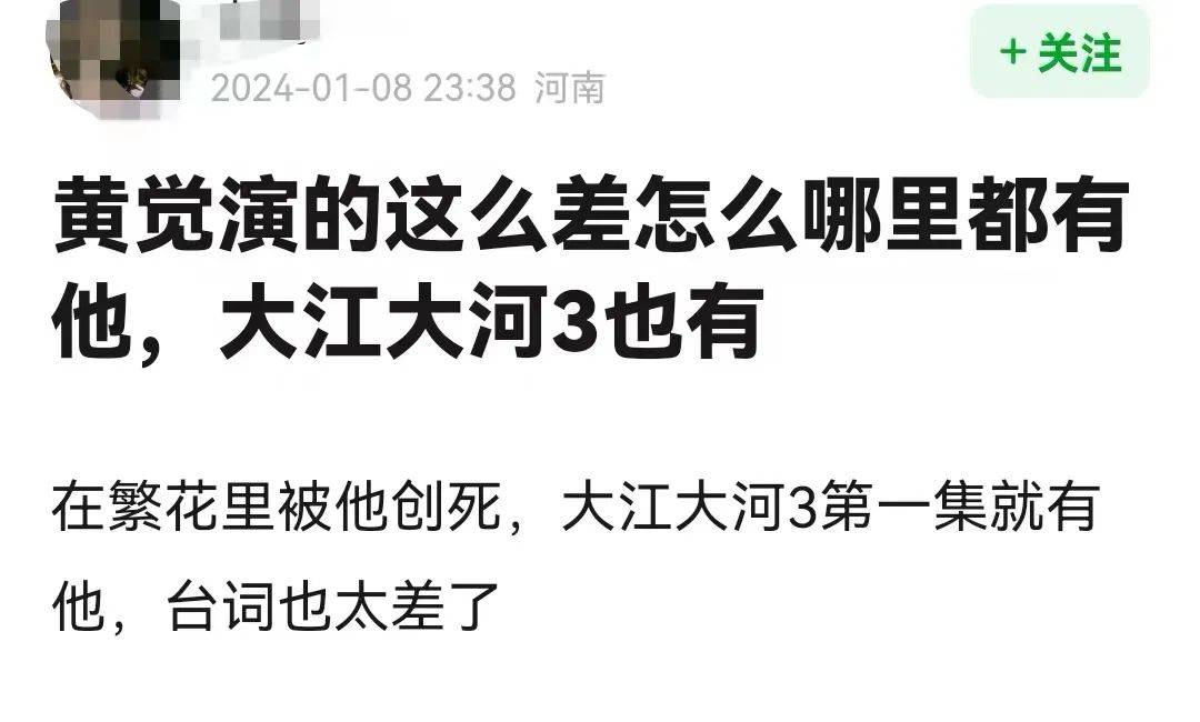 由于黄觉在《繁花》中的口碑太差了,于是《大江大河3》一开播就有许多网友吐槽,看见黄觉都不想看了,怎么他演技这么烂还有这么多的资源?