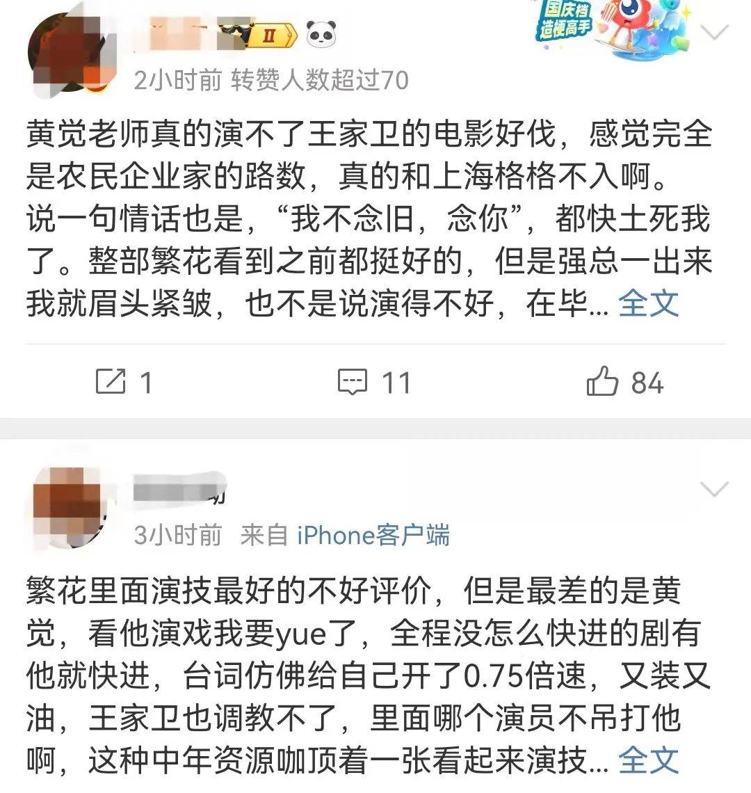 其实最主要的还是因为黄觉在《繁花》中的表现太拉胯,他在剧中饰演的“强总”是股市上呼风唤雨的大人物,但黄觉却只停留在人物的表面,因此被嘲不知道的演的是农民企业家。