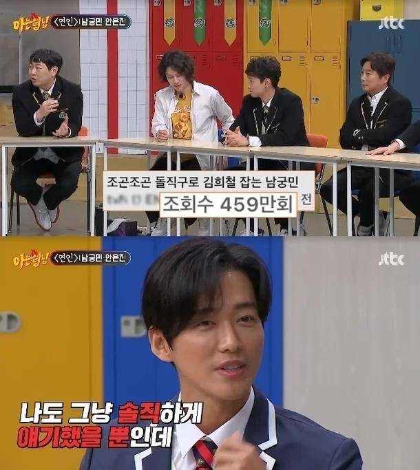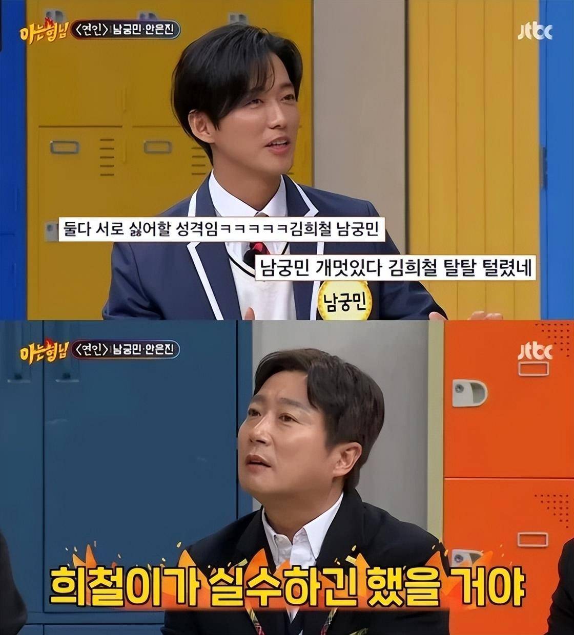 姜虎东提到了另一个与南宫珉不和的传闻,最后一部JTBC韩剧是 2014 年播出,姜虎东提到了不和,他说:“2014年,已经快10年了,是不是有什么误会?”,南宫珉表示:“我也想在JTBC工作,如果有高层的话,也请邀请我吧” ,然后成员们说“这是谎言”,并认为剧本是堆积起来的,徐章勋还推测,未出席的原因是“JTBC没有颁奖典礼”。