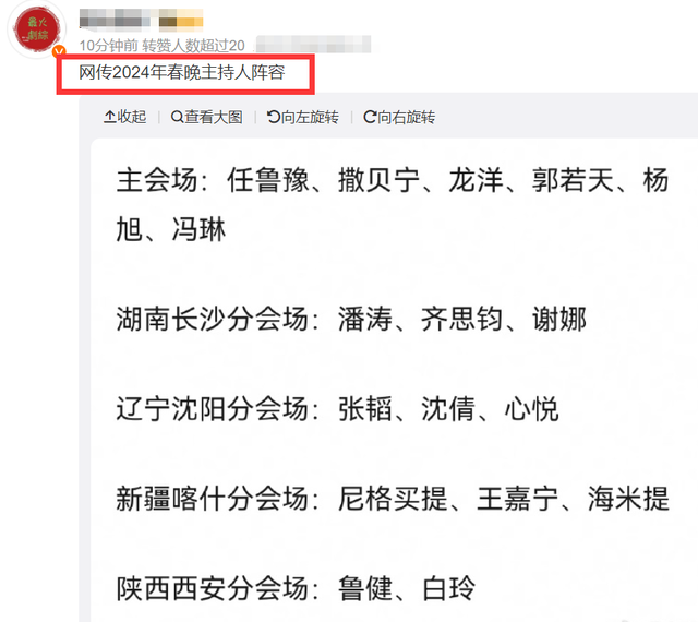 原标题:曝2024年春晚主持人阵容,谢娜加入引热议,康辉董卿依旧缺席