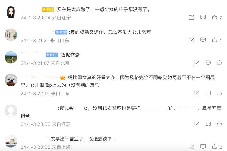更有人指出她过于做作,风格过于成熟,与她年龄应有的清纯感格格不入。这一争议也引发了社交媒体上的热议,一些人对于16岁的Lily过早追求成熟的审美观表示忧虑,认为这有可能对她的身心健康产生负面影响。