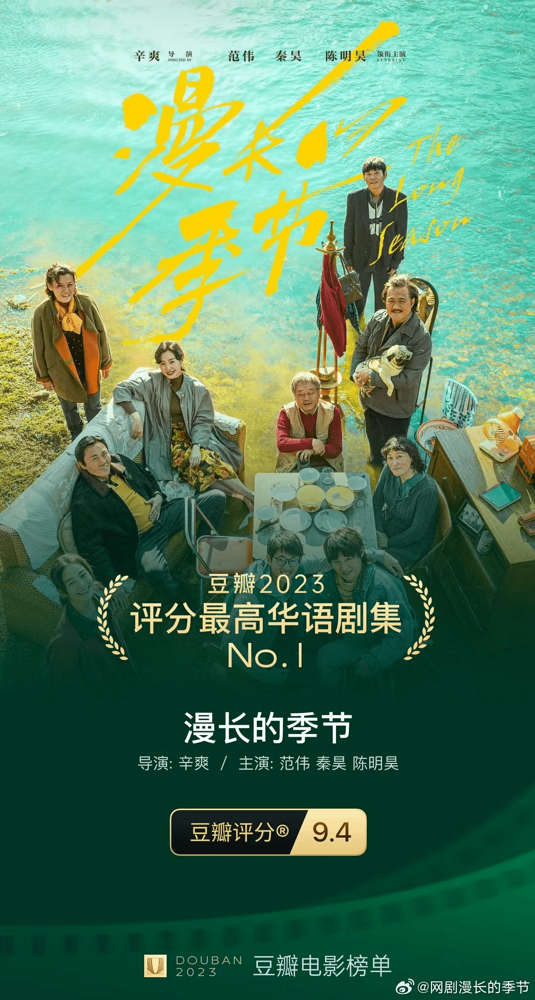 这里必须提到的是2023年乃至近几年来口碑最高的国产剧《漫长的季节》。截止目前,在豆瓣已有近93万人为这部剧打出9.4的超高分,成为行业内的口碑标杆。
