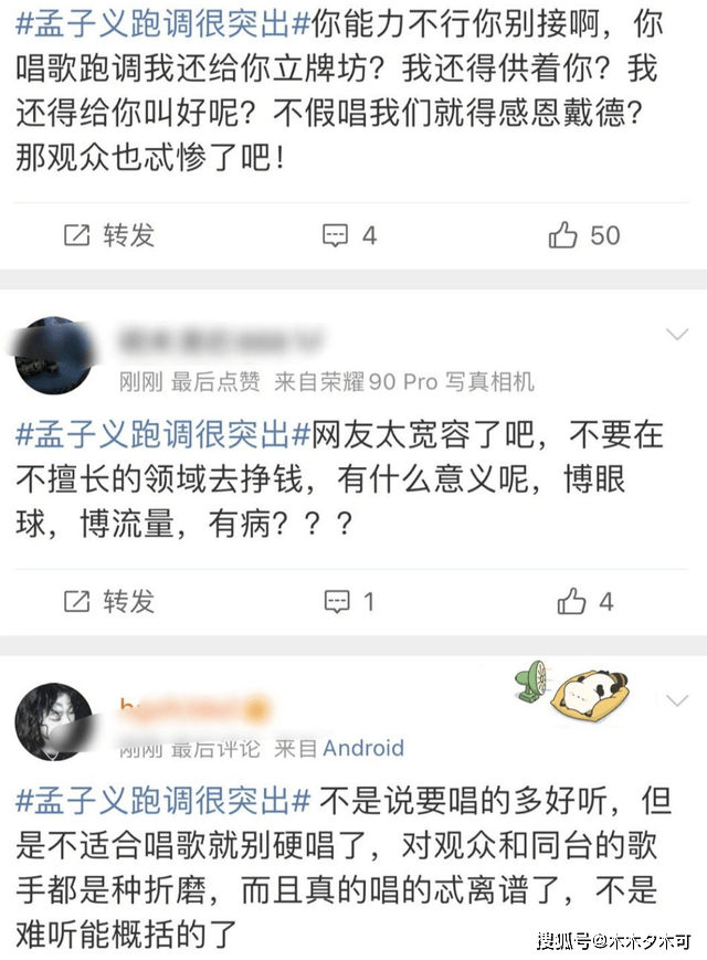 事后孟子义本人也在微博发表道歉,说自己真的尽力了,但观众对于这样的道歉并不接受,大家纷纷在质疑主办方,质疑孟子义,明明自己没这个能力,在自己不擅长的领域去挣钱,意义何在?而江苏卫视也故意在全员真唱中搞这么一出,通过审丑来获取流量,很难不让人相信就是故意的。