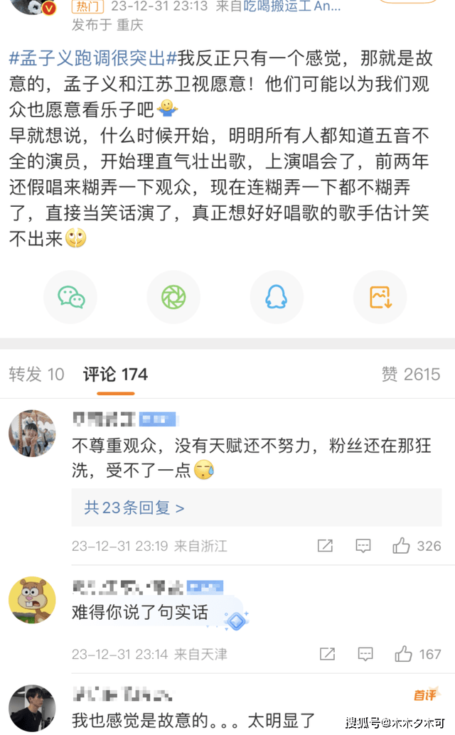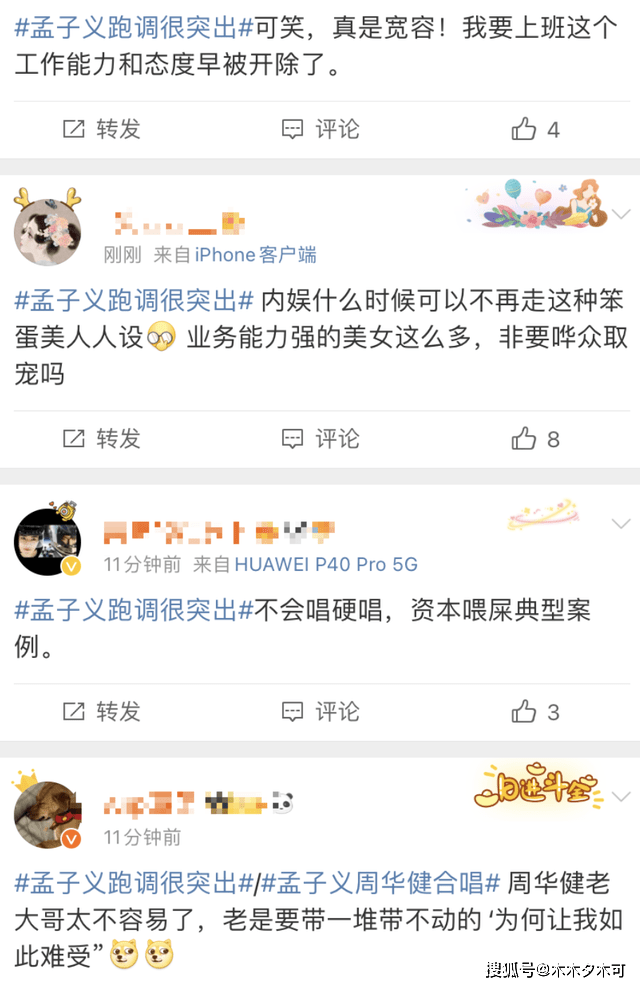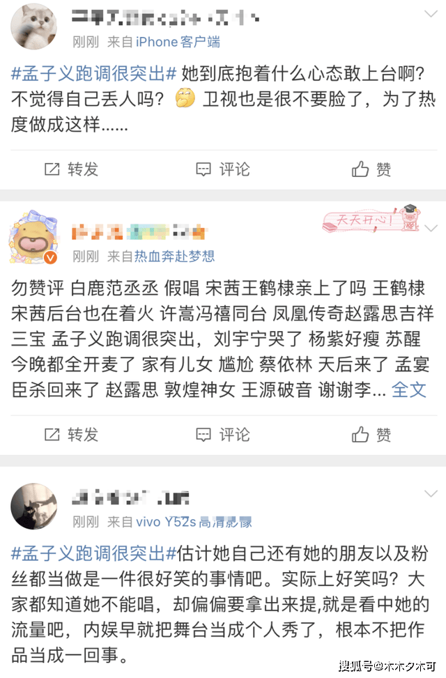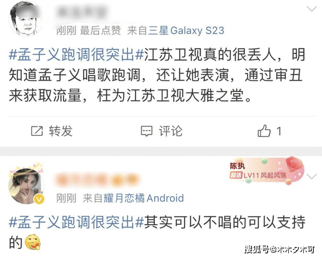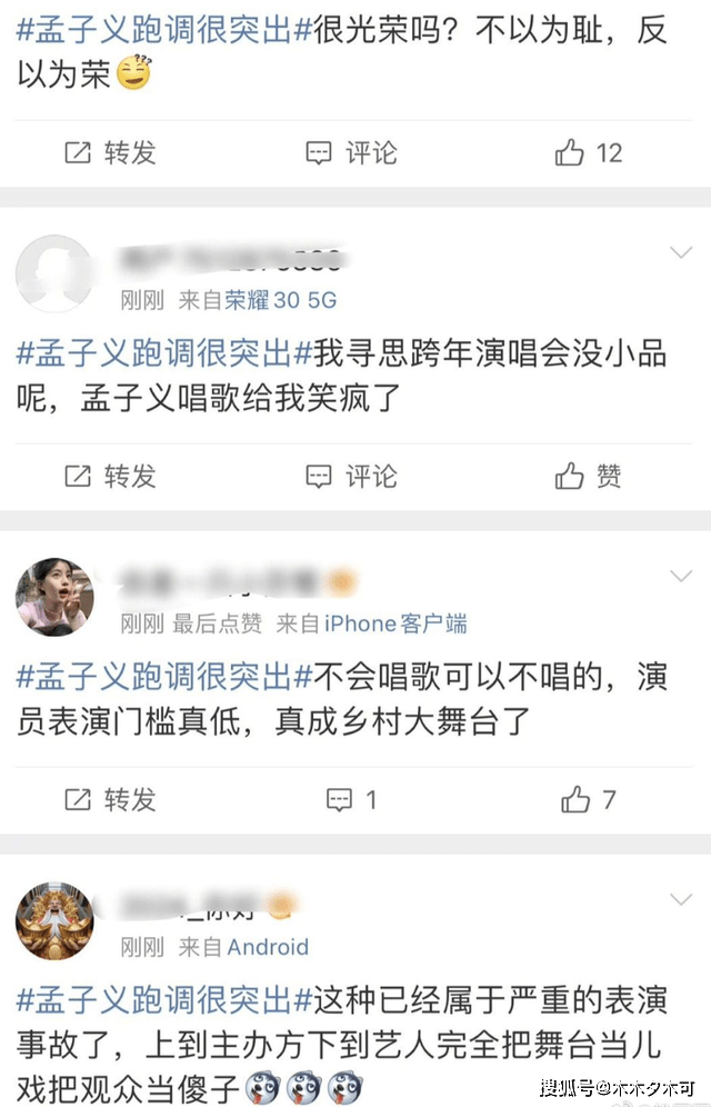 后面大合唱环节,其他几位艺人一起开口都没压住孟子义的声音,跑调跑的过于离谱了,网友直言被孟子义开口吓了一大跳,在整场晚会实现真唱时,可以说孟子义的参与成了江苏卫视最大的败笔,凭一己之力拉低了整场晚会的档次。