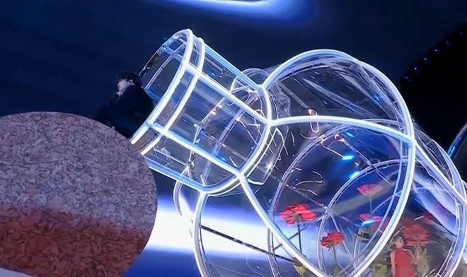 远望去还有点像空间站,因为里面有旋转跳跃的舞者。也像水晶宫,因为里面有悬浮的花。