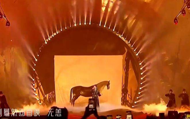 刘宇宁表演《奉上》后面的道具马虽然有点假,却很健壮威武,一下子进入《一念关山》。