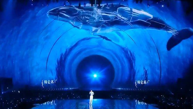周深演唱《化身孤岛的鲸》不仅歌声唯美空灵,身后旋转的蓝色虫洞和游动的鲸也美翻了。