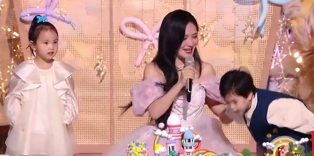 和小朋友牵手说话的时候,谢娜牵着小男孩的手,又转过头和小女孩聊天,差点把小男孩扯倒,也是很惊险了。