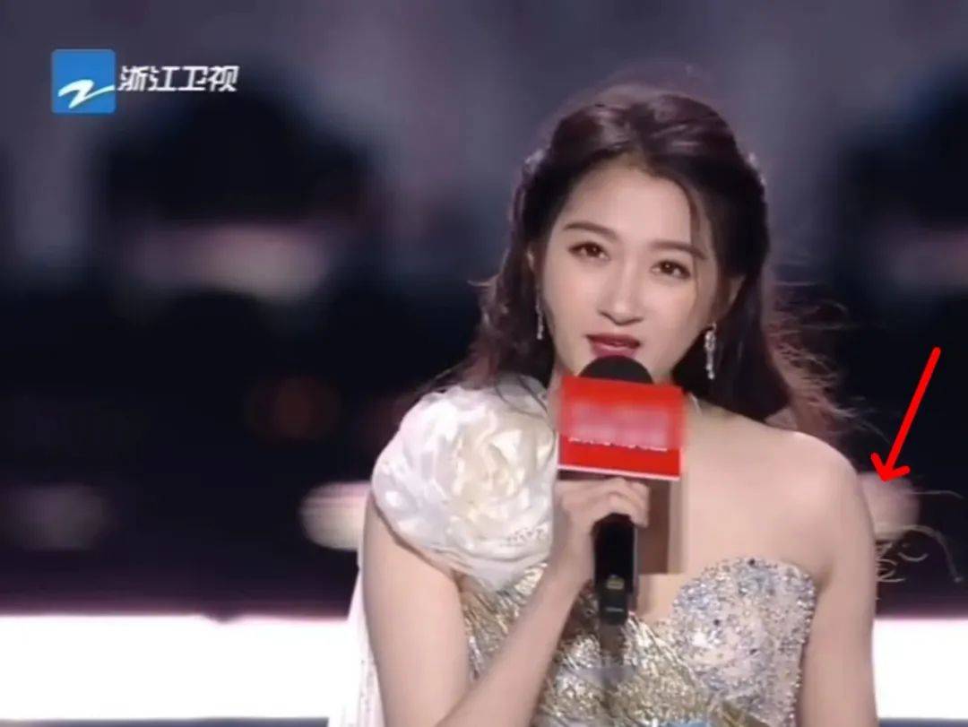 比如关晓彤,她是浙江跨年晚会的主持人之一,她的团队又选错礼服了,显得肩宽发福,身材臃肿、造型翻车。