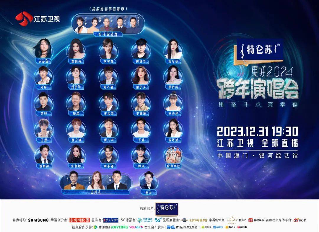 2023年12月31日19:30,备受期待的《特仑苏更好2024江苏卫视跨年演唱会》将闪耀中国澳门银河综艺馆,面向全球观众直播。在多年来一以贯之的“用奋斗点亮幸福”主题下,本次荔枝跨年以“更好”为情绪锚点,温暖陪伴观众共度辞旧迎新的夜晚。