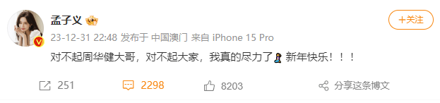 孟子义也因为跑调登上热搜了,因为她跟周华健等人一起表演,就她一个不是专业歌手,跑调突出得不得了。