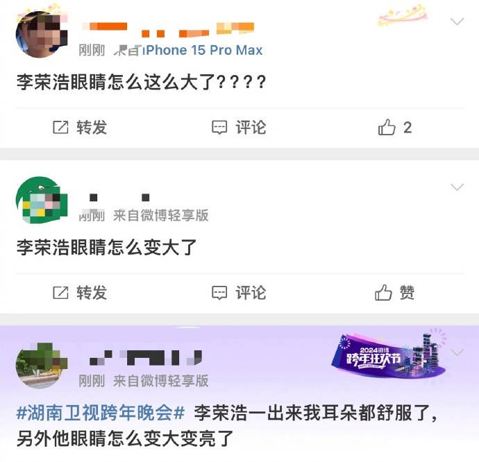 事实也证明,网友们的惊讶绝对是合理的,以往看李荣浩感觉他卧蚕比眼睛还大,可是今晚他的眼睛睁得大大的,不知道的还以为这是芒果给他开美颜了呢。