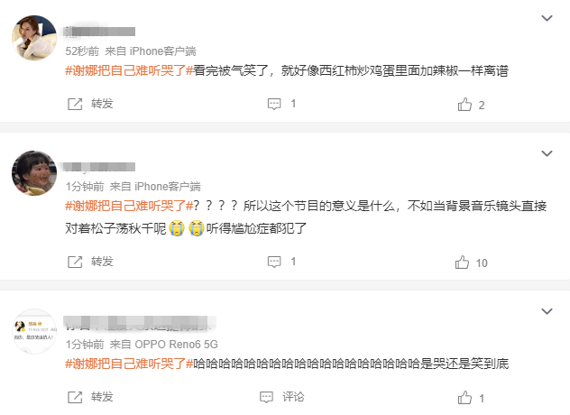 网友们吐槽也是很不留情面,特意创了话题说谢娜这是把自己唱哭了,而且是难听哭了。
