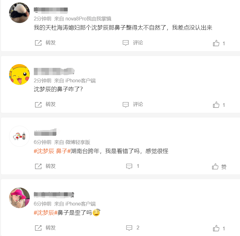沈梦辰的鼻子愈发歪了,不少网友忍不住发文吐槽,包括她的山根部分,也是逐年膨大了起来,实在太过抢镜了。