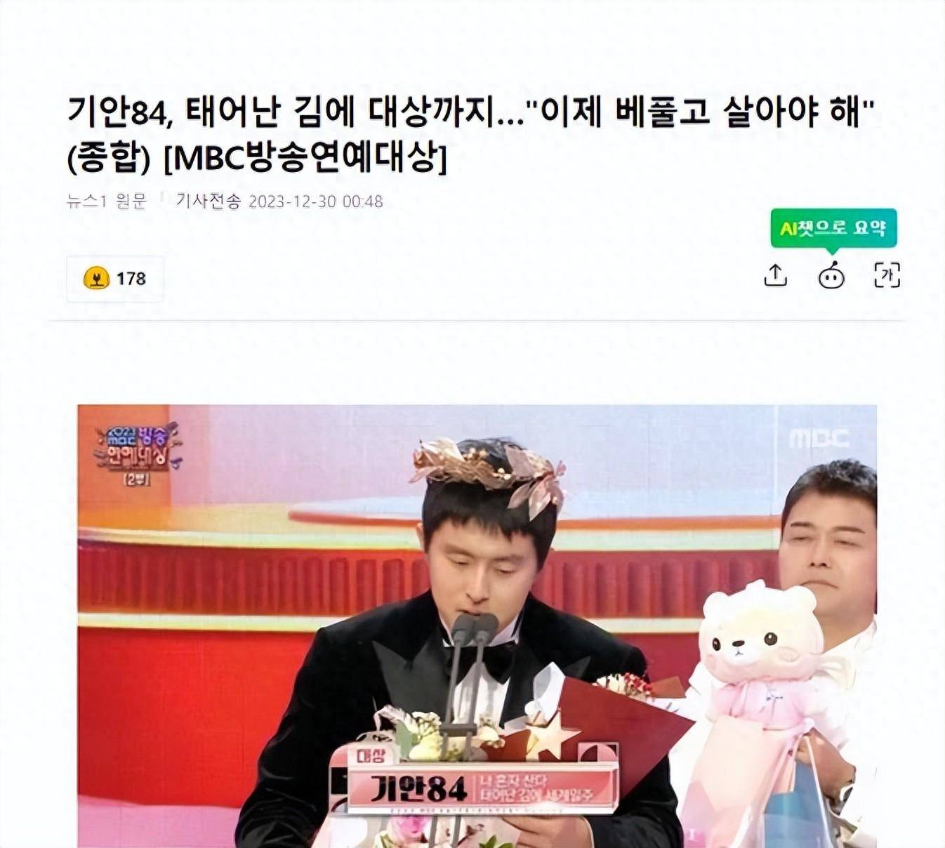 广播员兼画家旗安84(金熙民Kian84),成为首位获得MBC演艺大赏大奖的非艺人,荣获了MBC的最高荣誉奖。