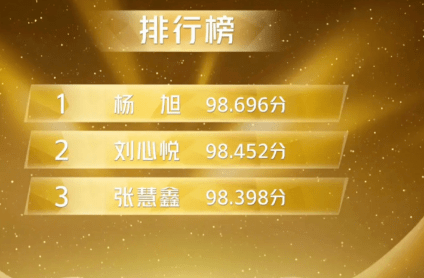 在这两轮比赛中,主持人杨旭表现的最为出色,他的分数是98.696、第二名刘心悦分数98.454、第三名则是张慧鑫分数98.452,而一向被大众看好的冯琳,却只拿到了铜奖。