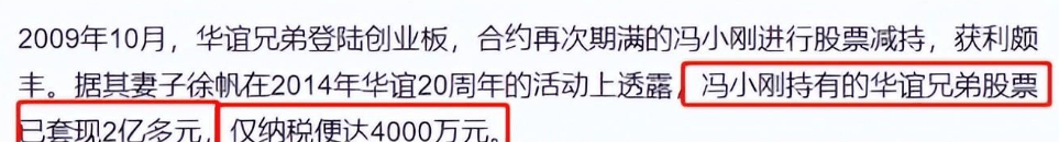 其中最大头的是和“华谊”的合作,当年的华谊也是如日方中,冯小刚曾出售百分之三华谊股份,就赚了2亿多。