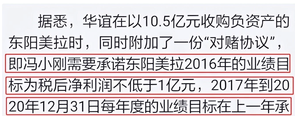 后来华谊用10亿元收购了冯小刚的公司,虽然后来对赌协议冯小刚输了,赔了2亿多,但总体还赚了8亿多呢。