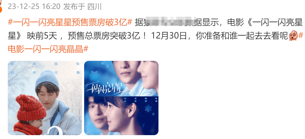 而同期上映的电影中,预售票房最高的是《一闪一闪亮晶晶》,预售票房已经破3亿元。