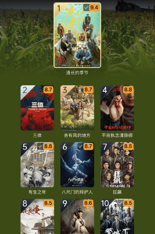 华语剧集方面,今年的佼佼者们可谓百花齐放,各种题材和风格的作品都有所涉猎。在评分最高的十部作品中,我们看到了如《漫长的季节》、《三体》、《去有风的地方》等备受瞩目的作品。这些剧集在剧情、演员表现、制作水平等方面都得到了高度评价,成为了今年华语剧集的代表之作。尤其是秦昊的《漫长的季节》,轰动一时,而且秦昊年底又带来了《三大队》,绝对是赢家。