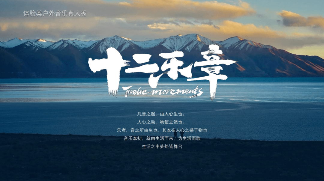 《十二乐章》,由好乐无荒音乐公司联合东方卫视、人民日报《国家人文历史》杂志社共同出品,该节目一反常规音综棚拍、追求极致舞台的模式,致力于走出户外、走进生活,在生活中发掘值得关注的好故事,给予创作人音乐养分,让节目充满未知想象力。