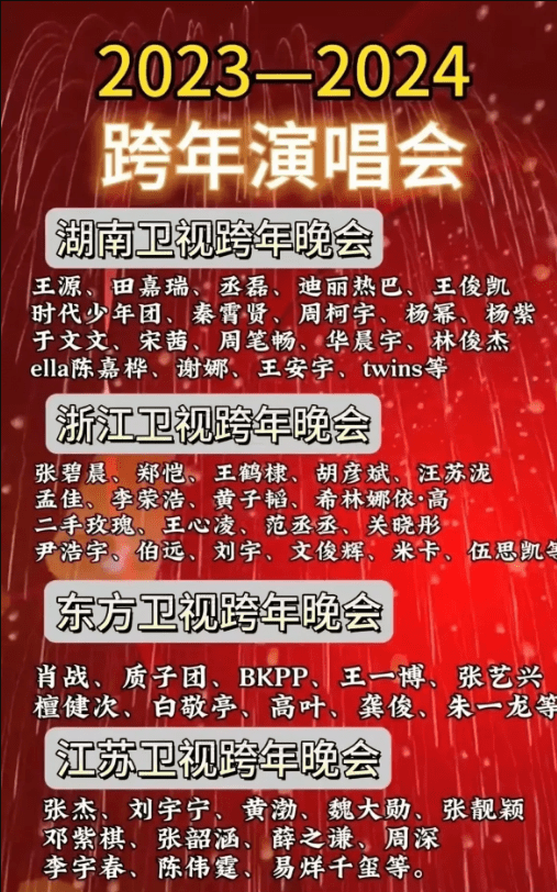 就在近日,有4家卫视率先公布了跨年演唱会的阵容,分别是湖南卫视、浙江卫视、东方卫视、江苏卫视。