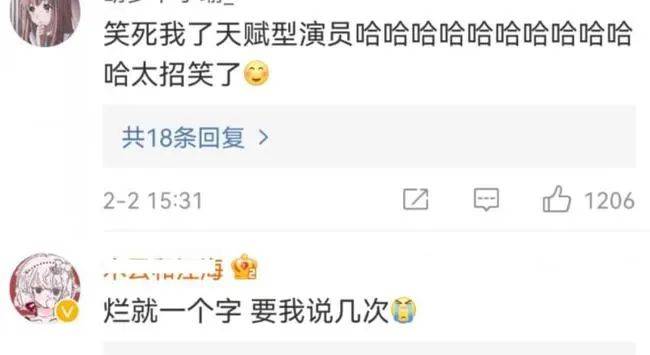 作为一个新人演员,她自信满满夸自己是天赋型演员。娱乐圈谁敢说自己是天赋型演员?就连周迅和孙俪都不敢这么自夸。