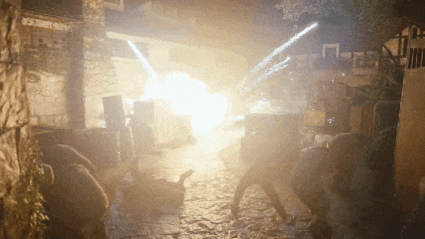 与敌特正面交锋时,火光冲天的爆炸场面。