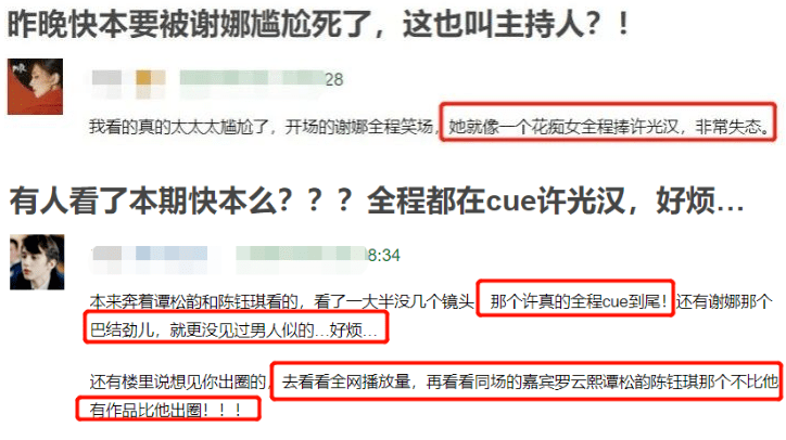 谢娜自称是帮工作人员追星,但从她全程吹捧许光汉的样子看,完全掩饰不住她对这位男明星的喜爱。在视频后期,谢娜甚至不遗余力地在屏幕上打上一行字:“(谢娜)比本人还着急”。这样的举动,确实有些过于夸张。