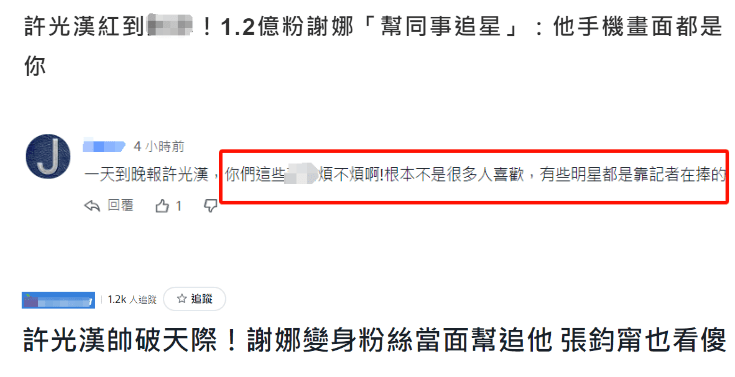 此次谢娜对许光汉的巴结追捧也成为台媒关注的焦点,报道中还特别强调了谢娜对许光汉的过度吹捧,借机狠狠吹嘘了一把许光汉的人气。然而,甚至连当地的网友都对此提出异议,表示许光汉并没有那么多人喜欢,呼吁不要再过度捧他。