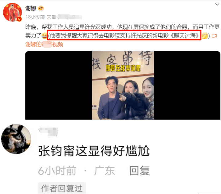 谢娜的互动视频中,原本有三位明星,分别是她自己、许光汉和张钧甯。然而,谢娜在文案和视频中完全忽略了张钧甯的存在,让张钧甯在现场显得相当尴尬。这可不得了,毕竟张钧甯和许光汉是同一部电影《瞒天过海》的主演,而视频中的谢娜竟然把张钧甯整个人晾在一边,不仅如此,在宣传电影的时候也对张钧甯一字不提。这种情商实在让人难以评价。